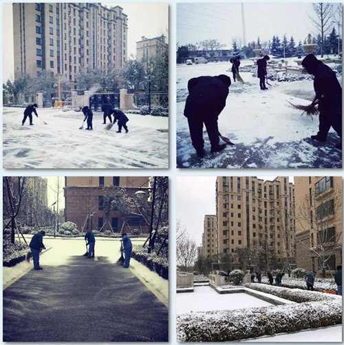 當(dāng)您吃過早餐暖暖出門的時(shí)候,當(dāng)您欣賞朋友圈里美麗雪景的時(shí)候,有一群人已經(jīng)默默來到了工作崗位上,他們在漫天飛雪中忙碌,只為讓業(yè)主在雪天安全出行,防止因大雪路滑帶來的各種安全隱患。