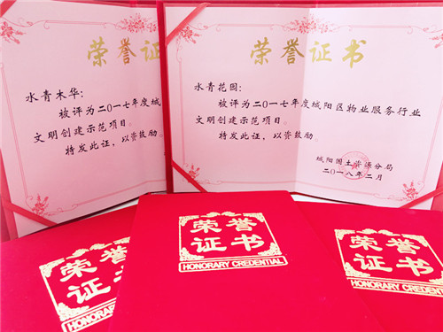 被評(píng)為“城陽(yáng)區(qū)物業(yè)服務(wù)行業(yè)文明創(chuàng)建標(biāo)兵企業(yè)”