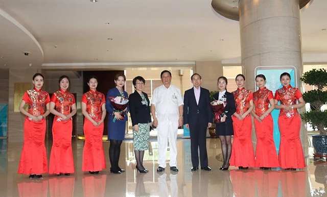 圖為酒店總經(jīng)理張曉東女士、副總經(jīng)理秦孟基、呂功濤先生及酒店管理層接待