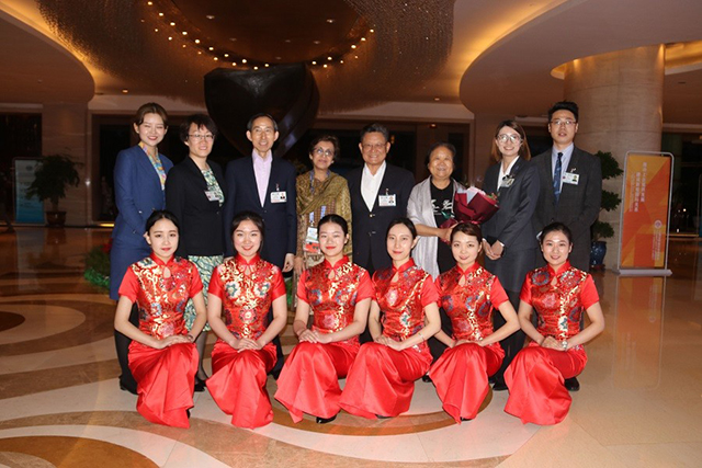 圖為酒店總經(jīng)理張曉東女士和酒店副總經(jīng)理呂功濤先生接待原聯(lián)合國副秘書長沙祖康大使及夫人