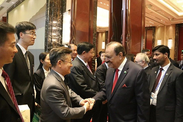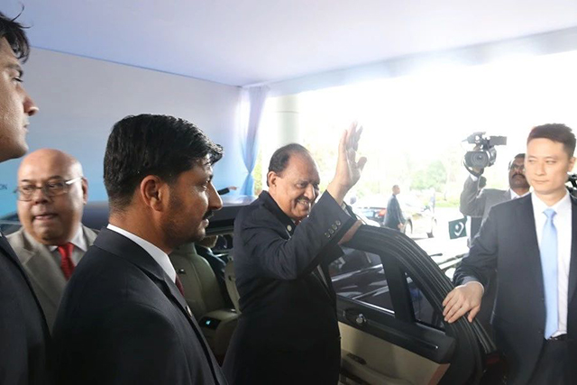 巴基斯坦總統(tǒng)馬姆努恩·侯賽因(Mr.Mamnoon Hussain)與中巴友協(xié)、中國國際文化傳播中心貴賓握手道別