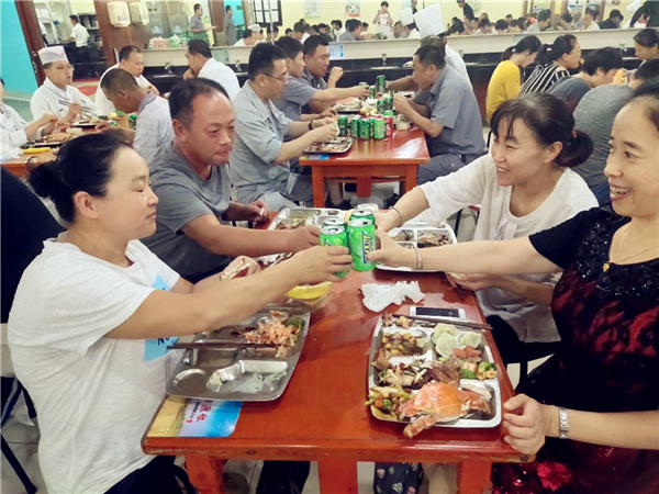 公司領導特意安排包括螃蟹、大蝦、餃子、各種飲料等在內(nèi)的豐盛的午餐晚餐,增強了大家對企業(yè)的認同感、歸屬感。
