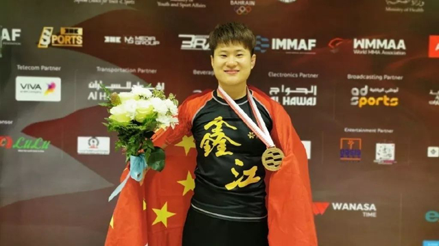 11月16日,2019世界綜合格斗(MMA)錦標(biāo)賽于巴林順利落下帷幕,來(lái)自鑫江國(guó)際搏擊俱樂(lè)部的韓廣美,以點(diǎn)數(shù)擊敗愛(ài)爾蘭選手肖娜·班農(nóng),摘得女子組61.2公斤級(jí)冠軍,這也是本次世錦賽中國(guó)隊(duì)奪得的唯一一枚金牌。24日,“中國(guó)力量 青島驕傲 世界綜合格斗錦標(biāo)賽冠軍韓廣美媒體見(jiàn)面會(huì)”于鑫江溫德姆酒店隆重舉行。