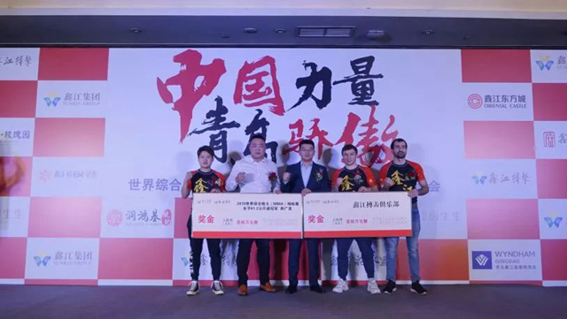 為祝賀鑫江搏擊俱樂(lè)部和韓廣美取得的優(yōu)異成績(jī),鑫江集團(tuán)現(xiàn)場(chǎng)特向俱樂(lè)部和韓廣美,分別頒發(fā)了10萬(wàn)元現(xiàn)金獎(jiǎng)勵(lì),希望這個(gè)冠軍之師能再接再厲,培養(yǎng)出更多的綜合格斗世界冠軍,讓世界看到“中國(guó)功夫”的力量。