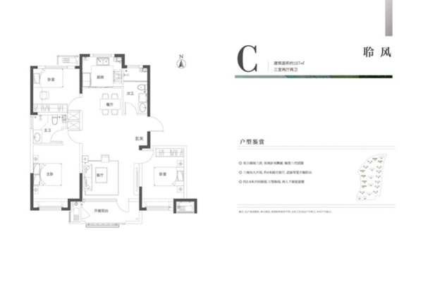 建面約97-107㎡雙衛(wèi)三居,建面約129㎡瞰山四居
