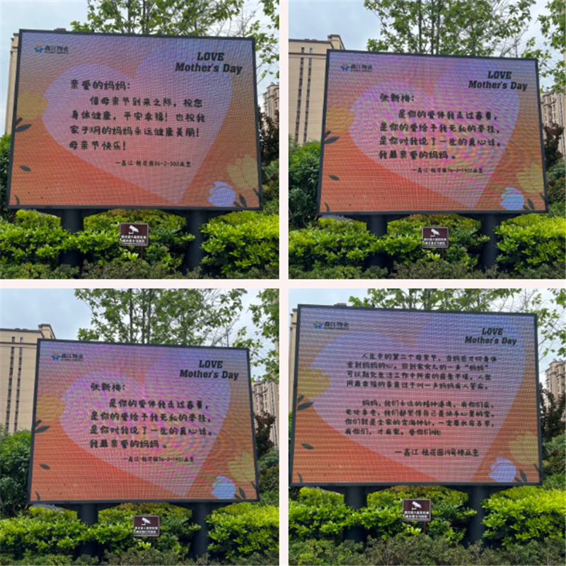 換個(gè)方式向媽媽告白吧!母親節(jié)當(dāng)日,物業(yè)LED屏化身為“表白墻”,把您想對(duì)母親說的話,向媽媽們表達(dá)你的愛吧!