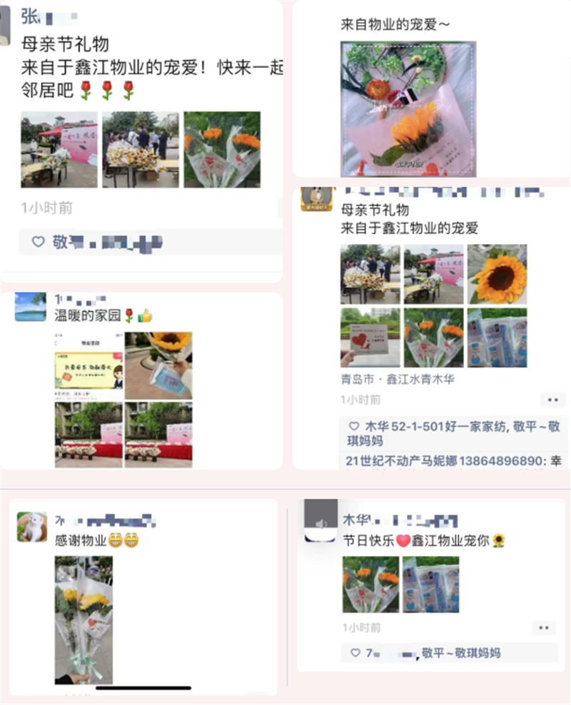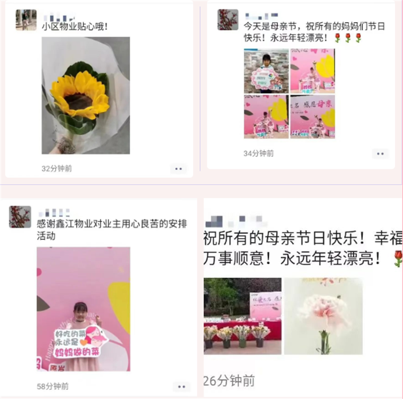 業(yè)主們將充滿溫情的活動(dòng)現(xiàn)場(chǎng),記錄在了朋友圈里,讓我們一起來看看,鑫家人的母親節(jié)是怎樣成功出圈的吧!