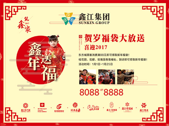 在嶄新的2017年里,鑫江集團(tuán)將繼續(xù)秉承鑫江精神、鑫江速度、鑫江誠(chéng)信,載新的希望,書寫新的篇章。再創(chuàng)一個(gè)豐收的2017!、