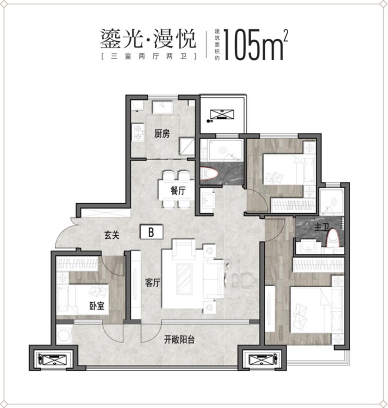戶型升級(jí):匠造零浪費(fèi)、零過(guò)道、零死角的極致戶型美學(xué),呈現(xiàn)建面約95-140㎡的寬域空間,全系標(biāo)配寬廳,主臥套房設(shè)計(jì),雙陽(yáng)臺(tái)布局,兼具了卓越的功能性與非凡的品質(zhì)感。